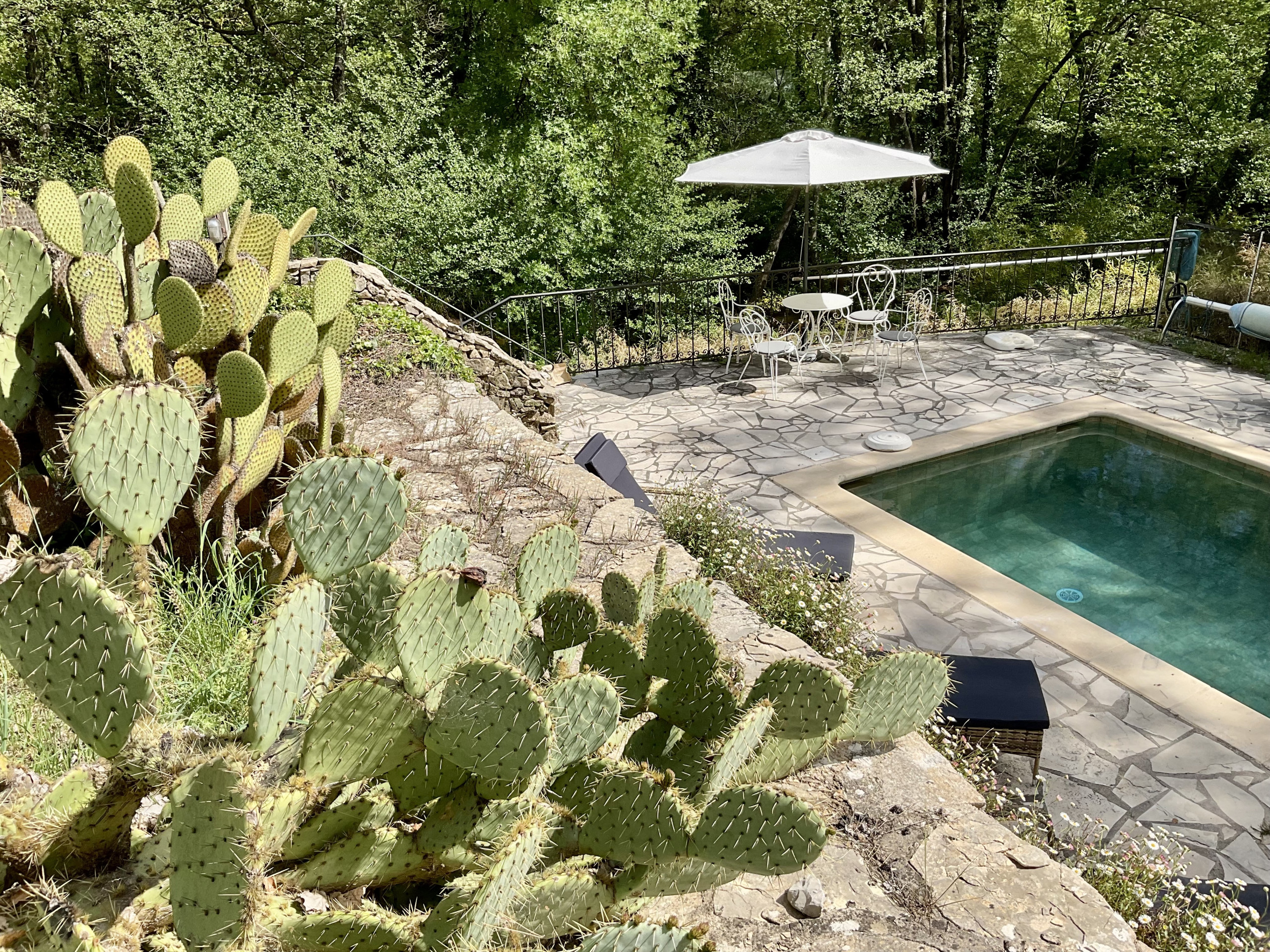 The swimming pool and its sun loungers inviting you to relax, complete this haven of peace for your stays with family or friends. Secured by an alarm.